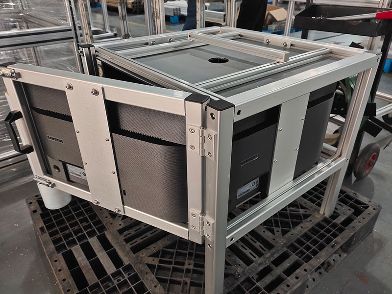 鋁型材框架制作的實驗柜,四面安裝液晶顯示器,內(nèi)部放置實驗動物,觀察動物在播放不同畫面時候的狀態(tài)。