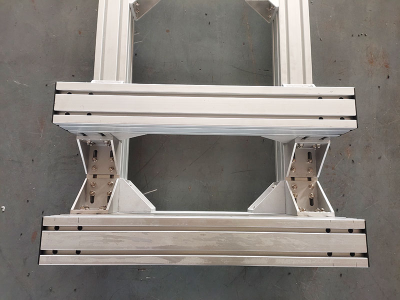 作為工廠精密設(shè)備的支撐底座,使用100100鋁型材,非常堅(jiān)固,底部安裝6個(gè)金屬蹄腳,承重力強(qiáng),外觀精美不生銹,橫梁可調(diào)節(jié)位置,方便機(jī)器安裝。